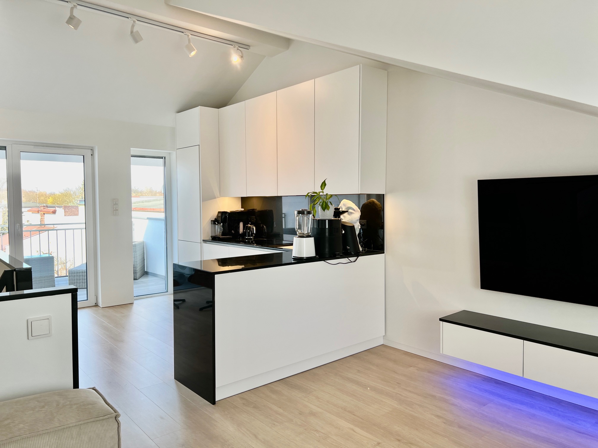 • otwarta strefa dzienna, salon z aneksem kuchennym oraz wyjściem na taras o powierzchni 10 m2