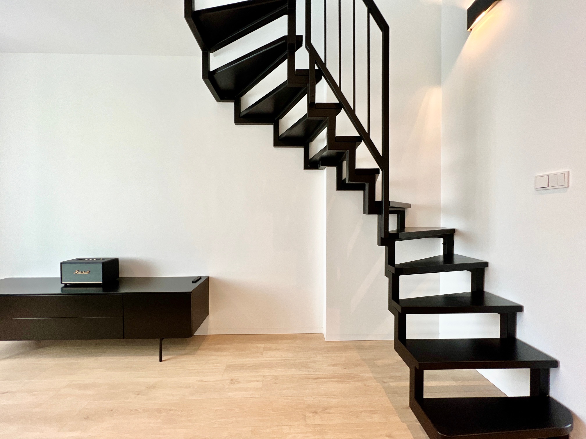 Nowoczesne industrialne wnętrze z funkcjonalnie zagospodarowaną przestrzenią.