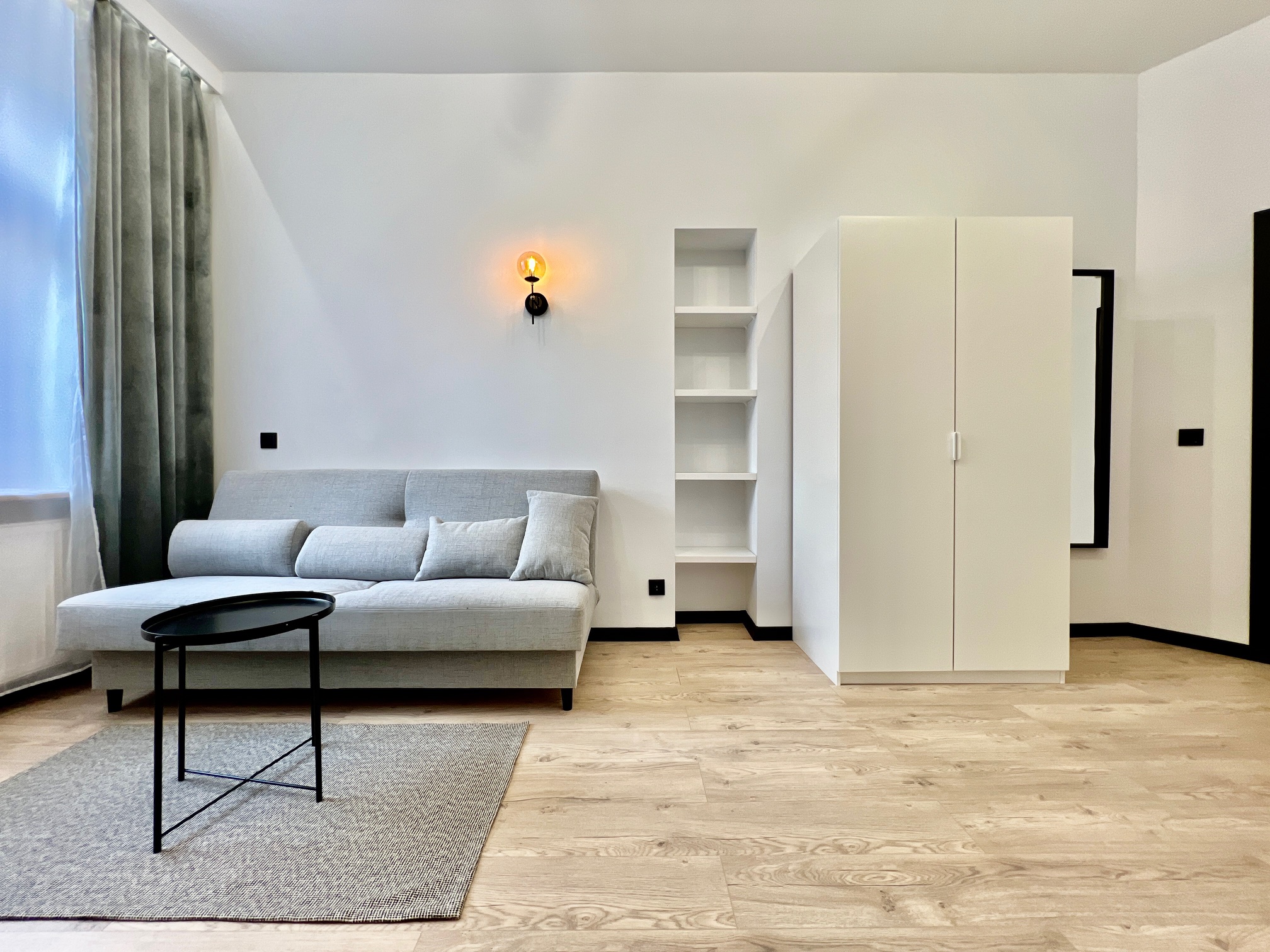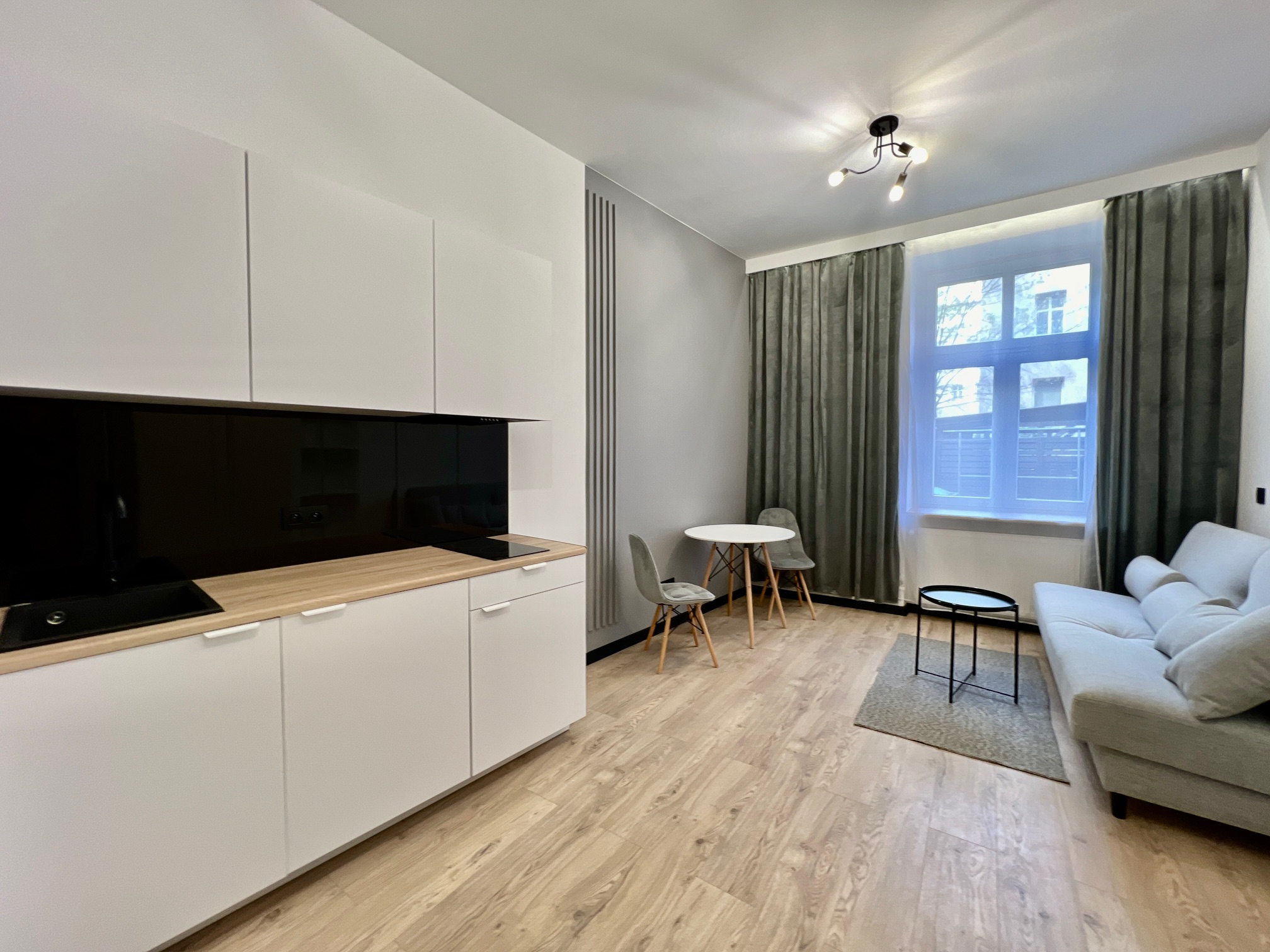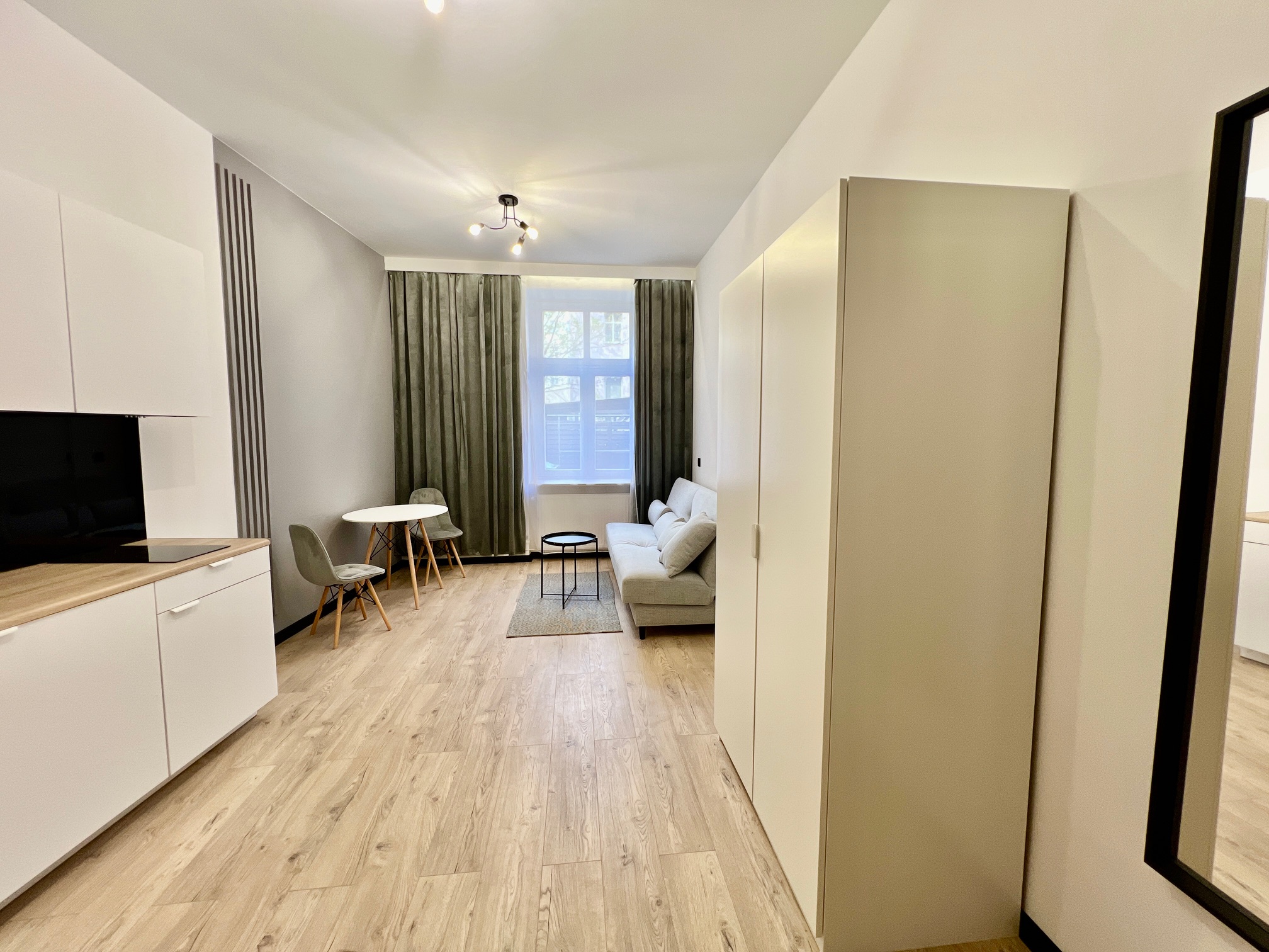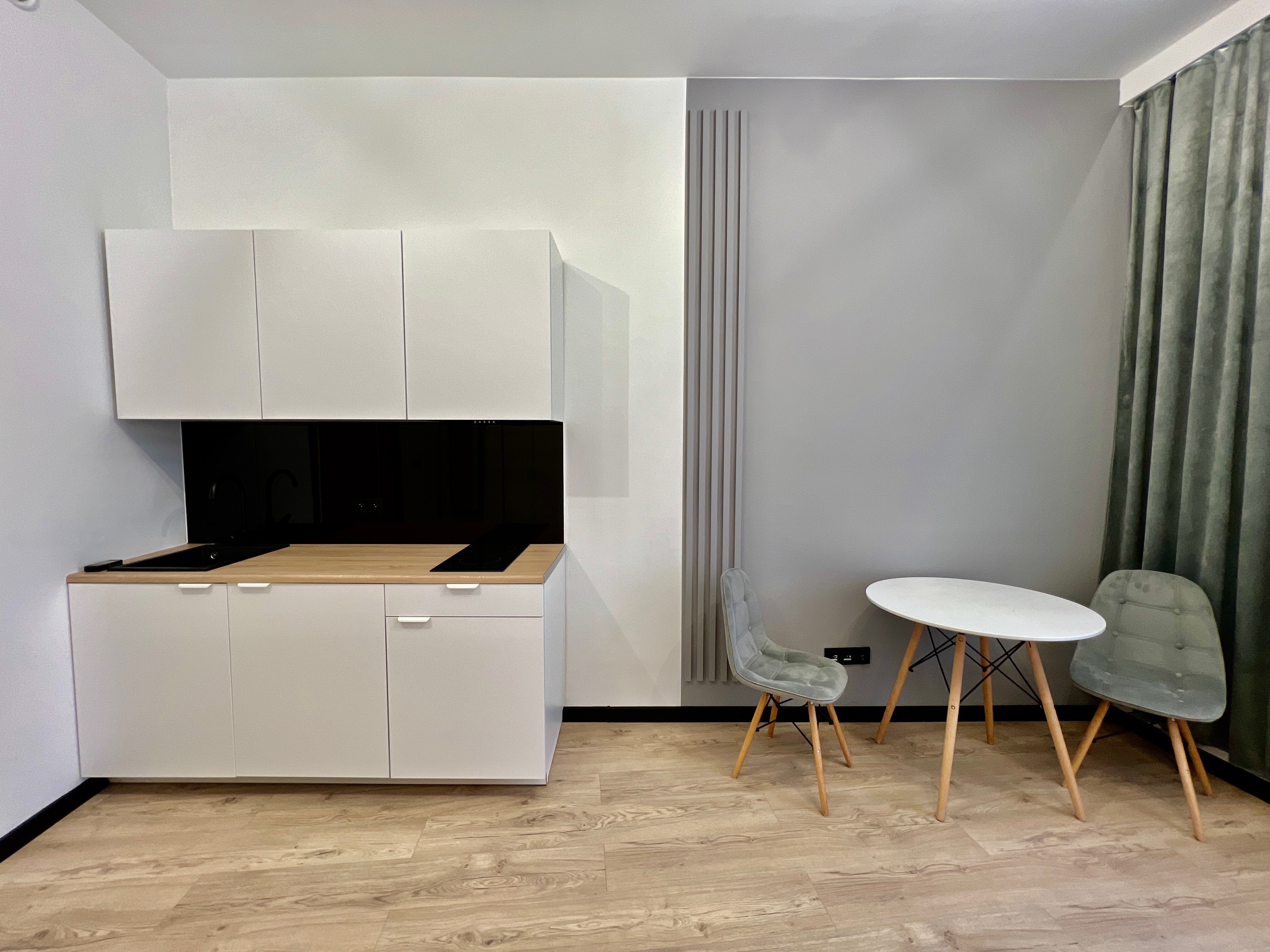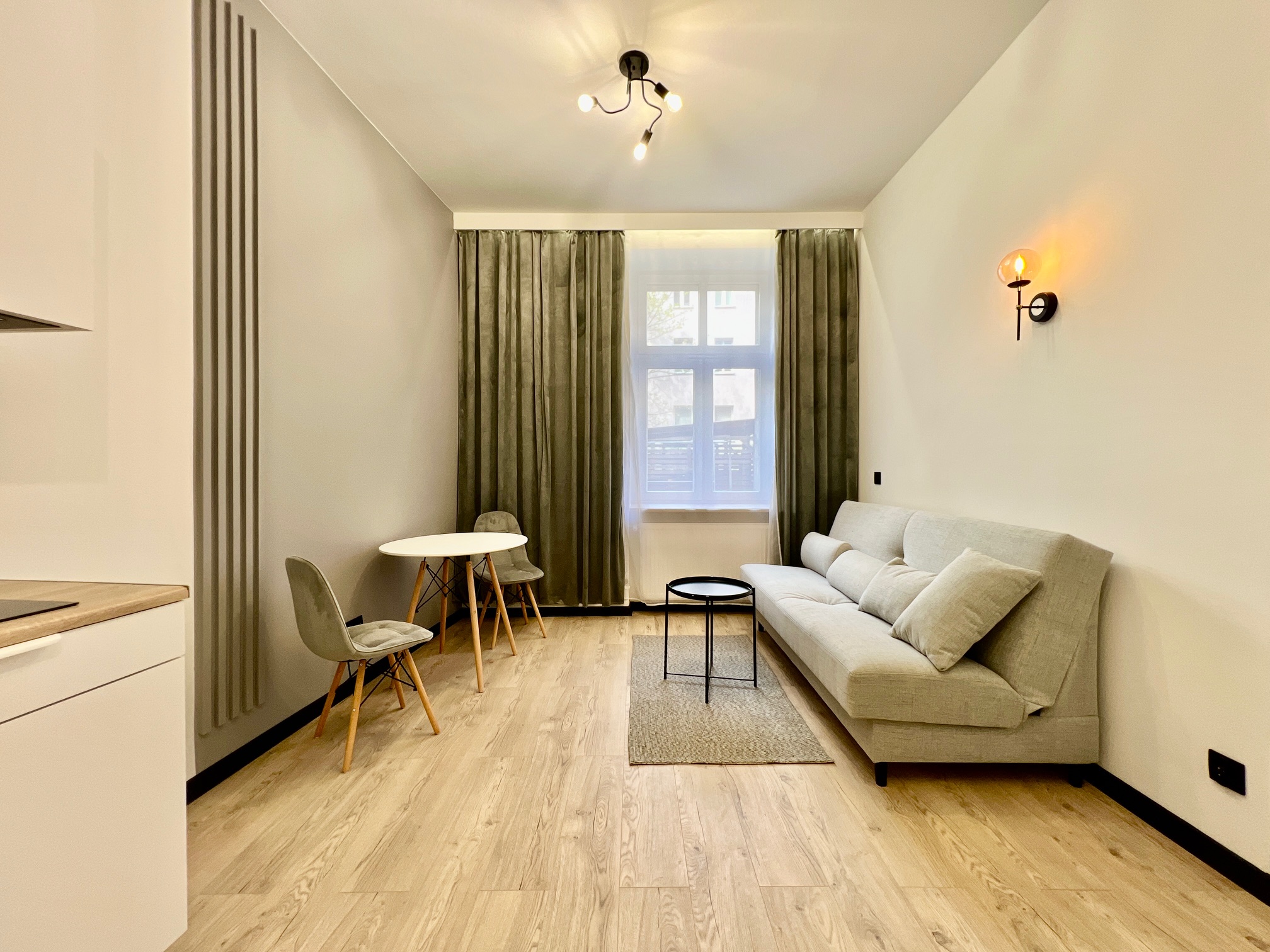 STANDARD WYKOŃCZENIA: Mieszkanie po kapitalnym remoncie. Kuchnia umeblowana oraz wyposażona w sprzęt AGD: lodówka z zamrażarką, płytę indukcyjna, okap. Minimalistycznie urządzona łazienka z kabiną prysznicową. Pokój wyposażony w wygodną sofę, stół z krzesłami, szafę. Do dyspozycji mieszkańców nowa pralka oraz suszarka do ubrań.