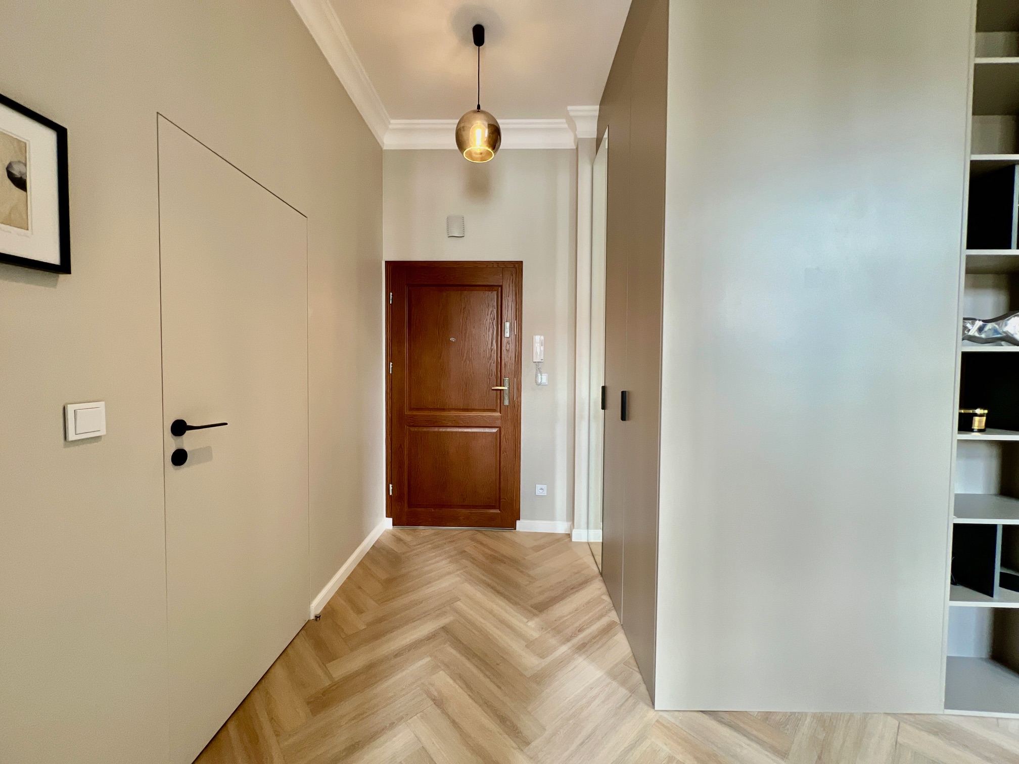- nowa podłoga winylowa jodełka w całym mieszkaniu